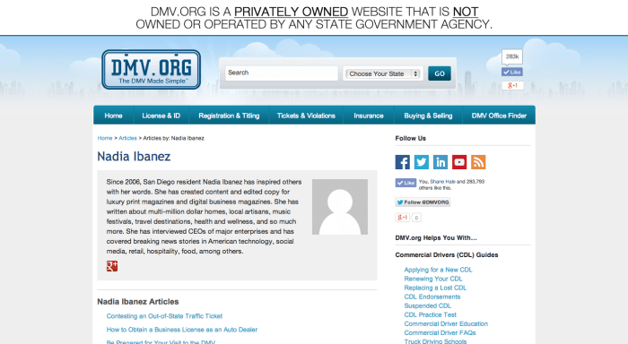 Here are a few articles I wrote for DMV.org covering a variety of car-related topics and searches throughout the country: How and Why to Check your Driver's License Status How to Order Specialty License Plates for a Motorcycle Change your Address for Voter Registration Driver Handbook Topics Contesting an Out-of-State Ticket Read all of … Continue reading Optimized content for DMV.org
